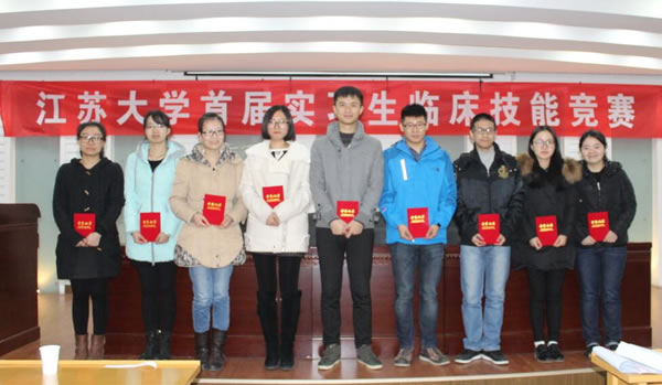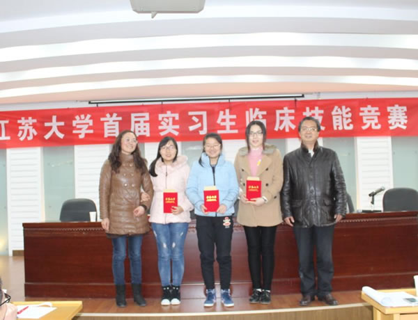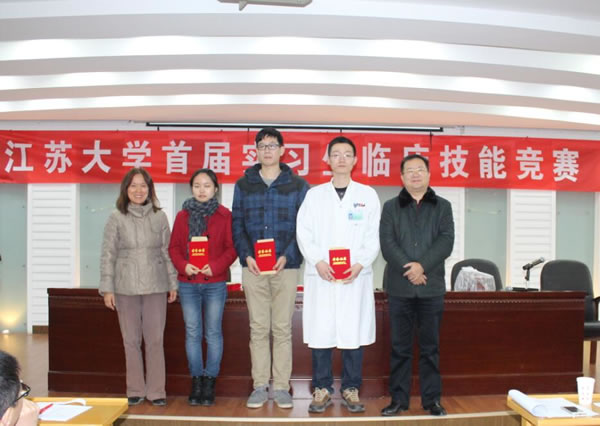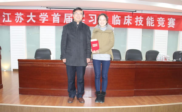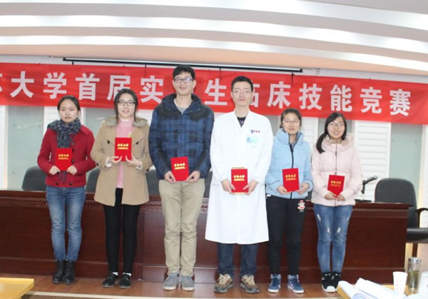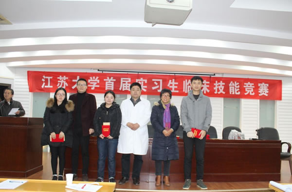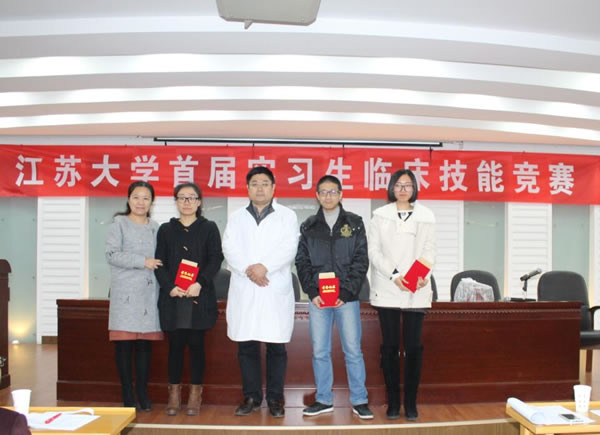 第一届实习生临床技能竞赛”活动,竞赛分初赛和复赛。初赛与本学年第一次临床实习教学检查同步进行,在各附属医院、教学医院及实习医院中,经专家考核选定27家医院的60名实习同学参加复赛,复赛于11月28日在北固校区隆重举行。经过理论考试、临床技能操作三站循环测试和专家面试三个赛程。采用随机抽签、现场亮分与逐步淘汰方式,经过激烈角逐,最终产生一等奖3名,二等奖6名,三等奖9名。七位评委为三等奖得主分别颁奖,医学部领导和第一临床医学院领导为二等奖得主颁奖,施卫东副校长亲临活动现场为一等奖得主颁奖后,发表热情洋溢的讲话,对这一活动给予充分肯定。