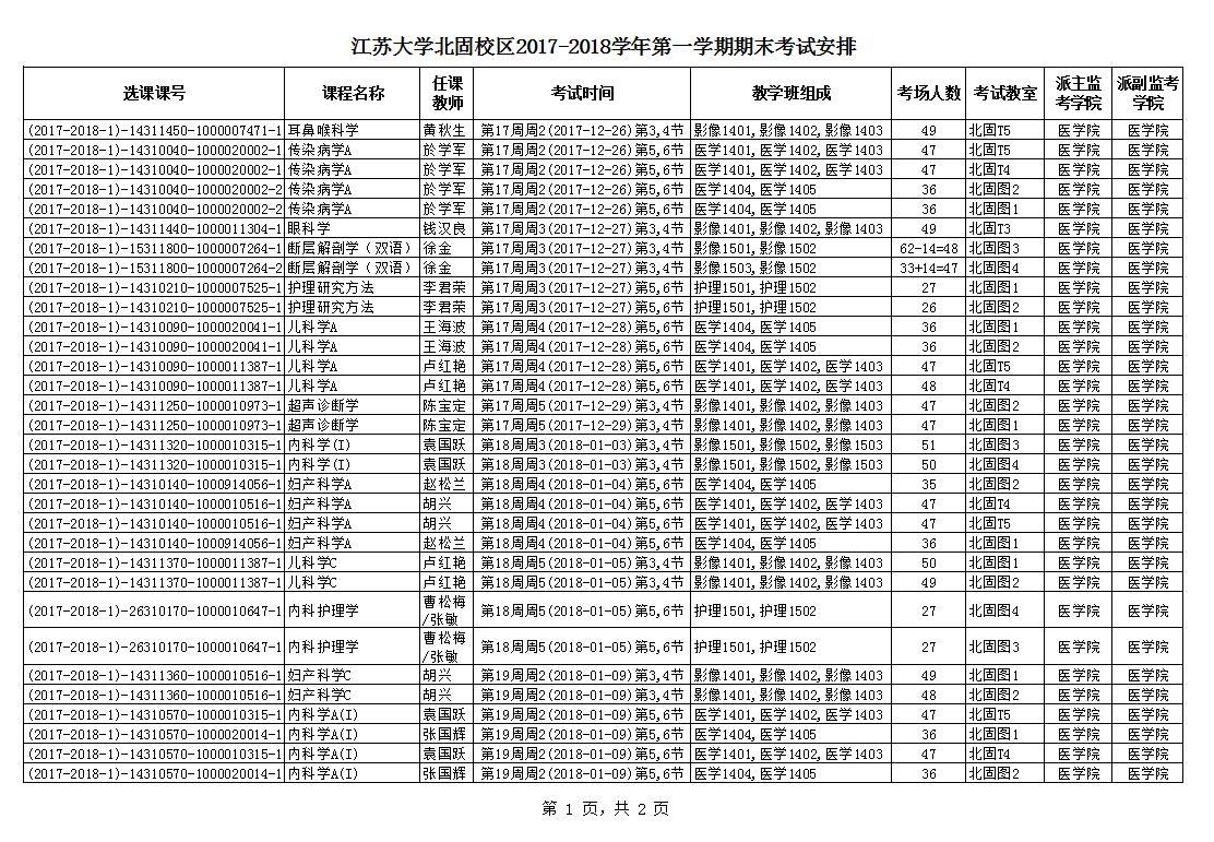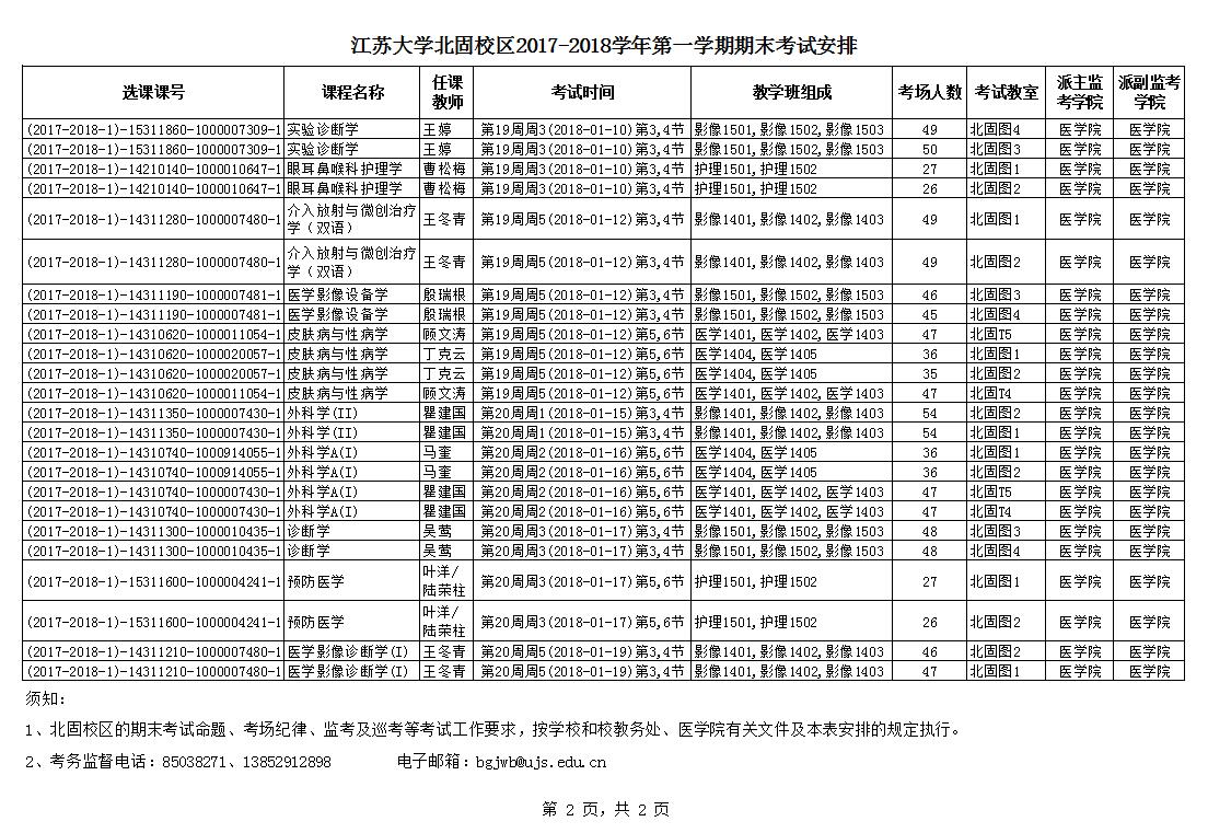 麻豆a片 北固校区2017-2018学年第一学期期末考试安排