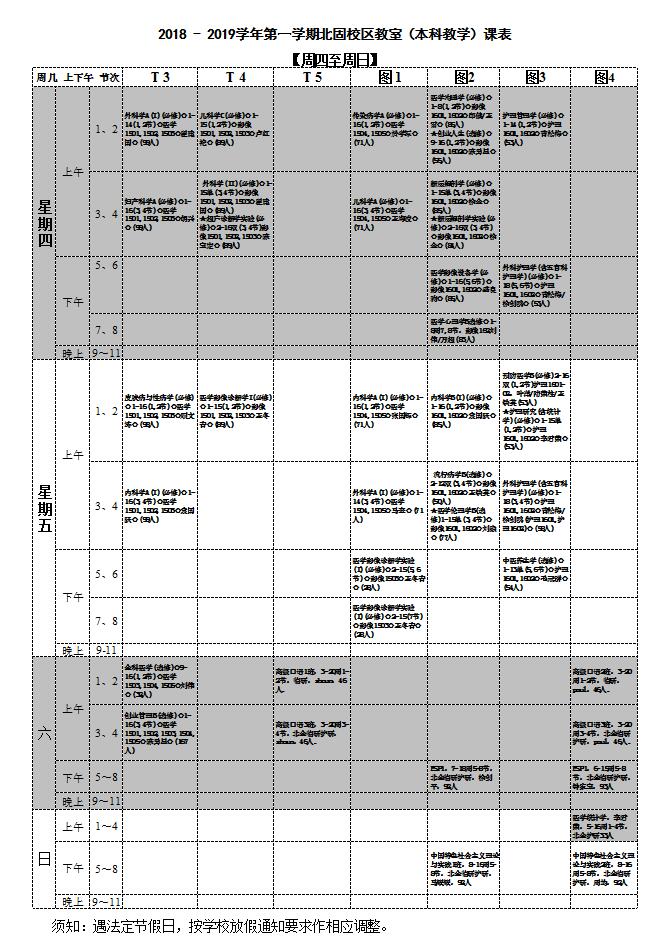 麻豆a片 北固校区2018 - 2019学年第一学期本科教学课表