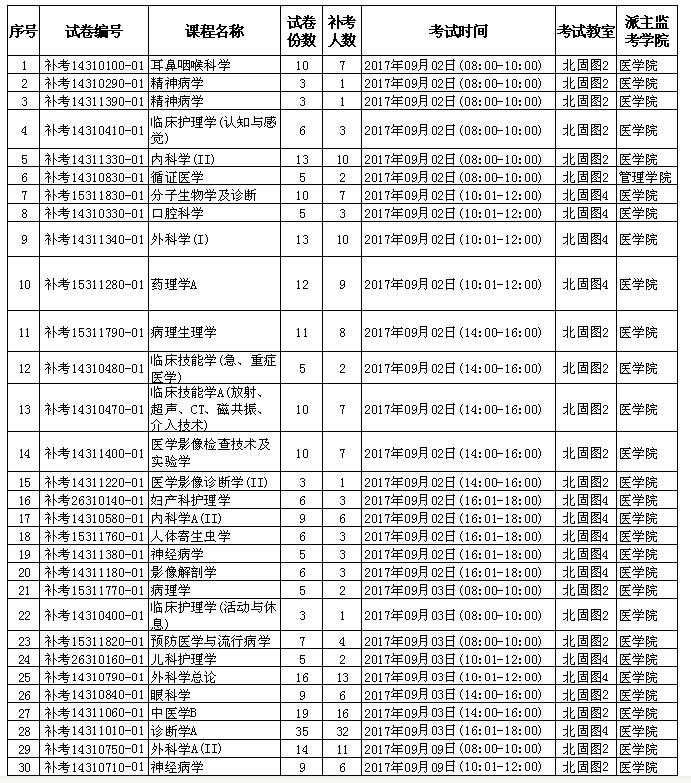 麻豆a片 北固校区2017-2018学年第一学期补考安排