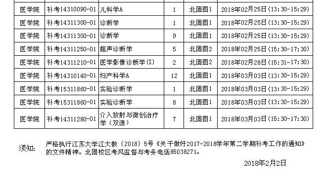 麻豆a片 北固校区2017-2018学年第二学期补考日程安排表