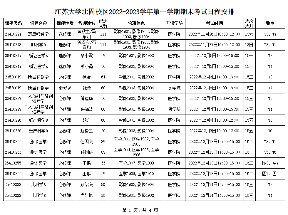 麻豆a片 北固校区2022-2023学年第一学期期末考试日程安排