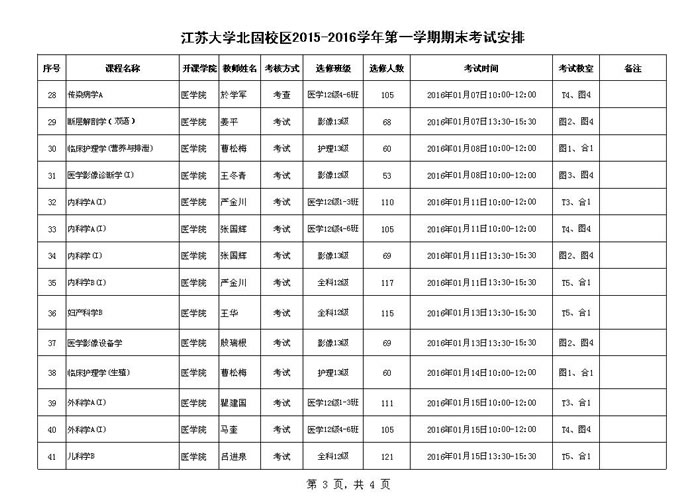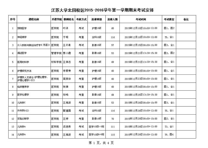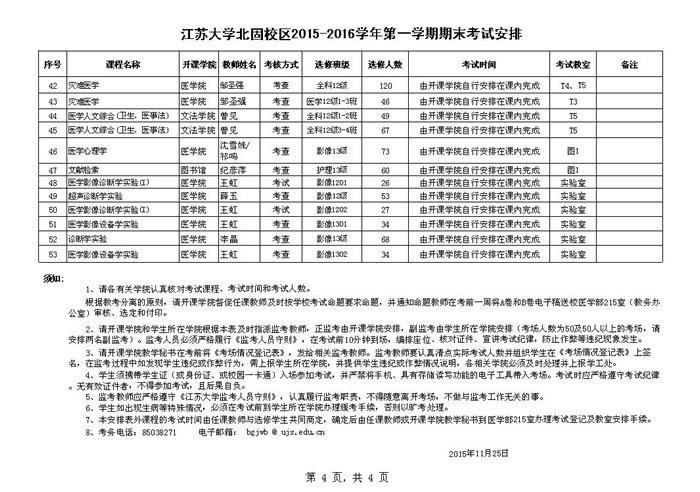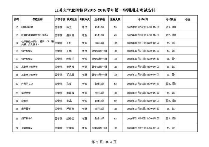 麻豆a片 北固校区2015-2016-1期末考试安排