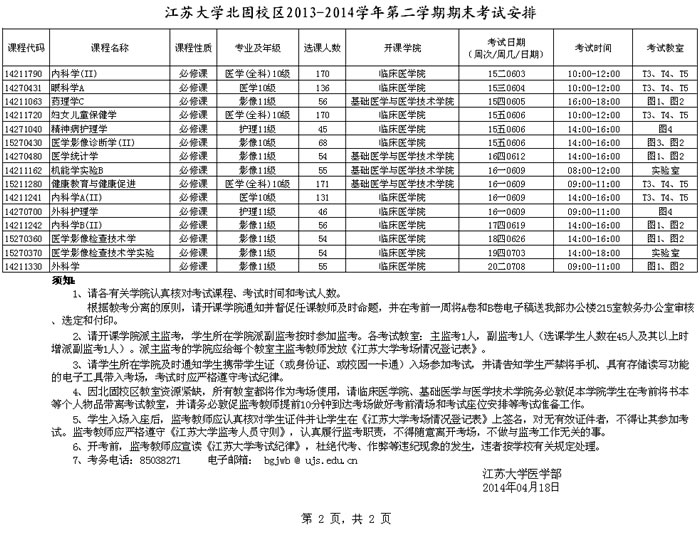 麻豆a片 北固校区2013-2014-2期末考试安排