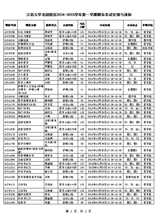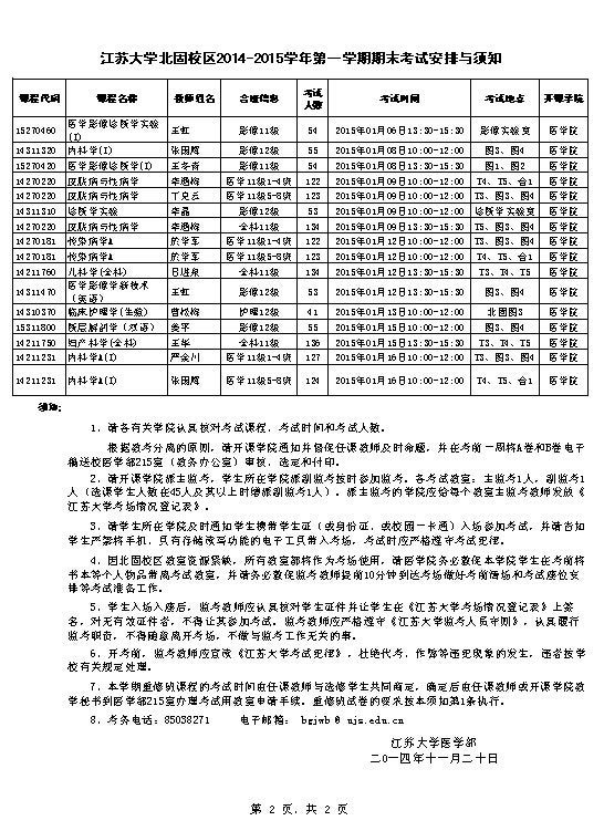 麻豆a片 北固校区2014-2015学年第一学期期末考试安排与须知