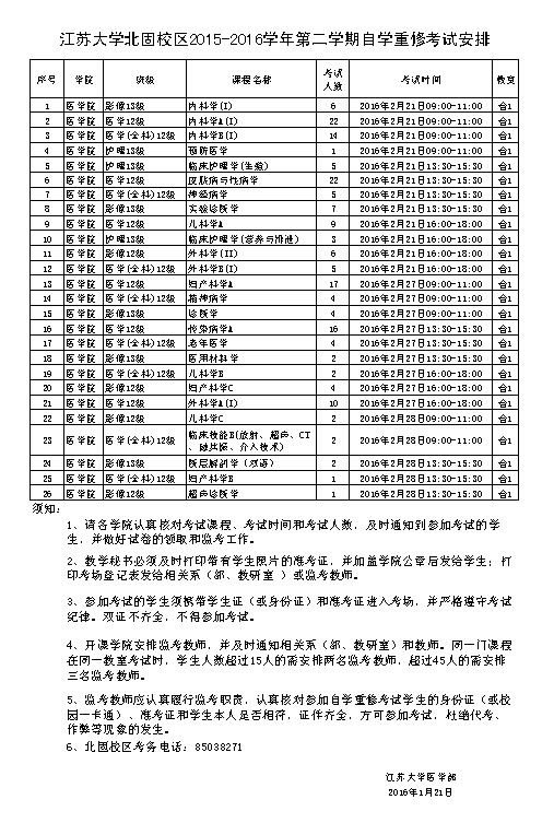麻豆a片 北固校区2015-2016学年第二学期自学重修考试安排