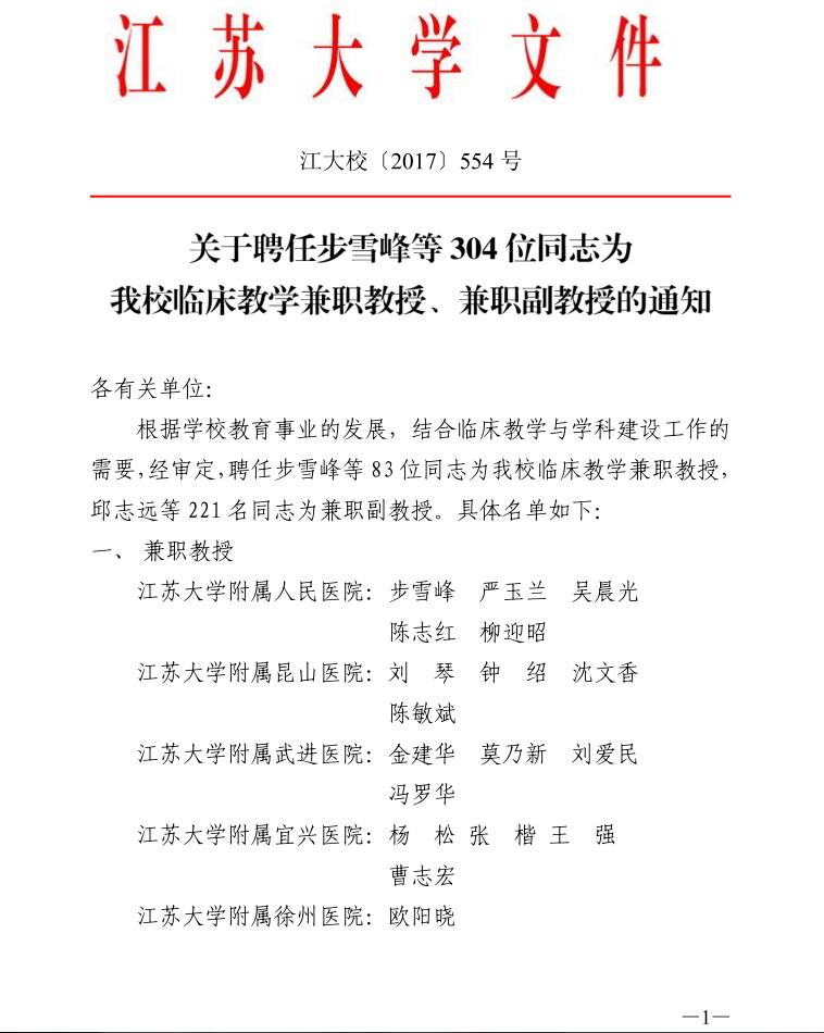 关于聘任步雪峰等304位同志为麻豆a片 临床教学兼职教授、兼职副教授的通知