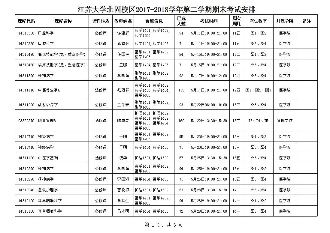 麻豆a片 北固校区2017-2018学年第二学期期末考试安排