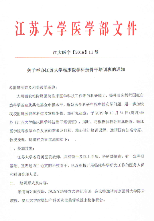 关于举办麻豆a片 临床医学科技骨干培训班的通知