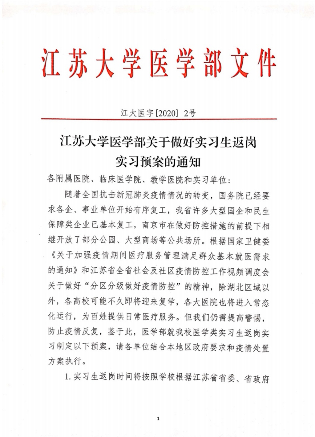 麻豆a片 医学部关于做好实习生返岗实习预案的通知