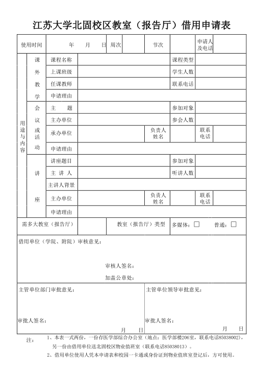麻豆a片 北固校区教室(报告厅)借用申请表